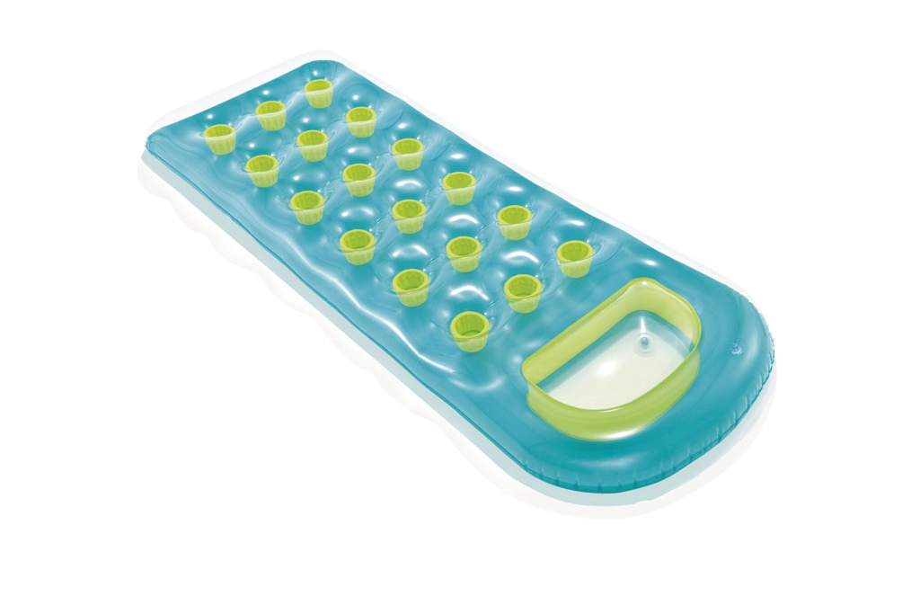 Насладете се на летните дни с този стилен надуваем дюшек с прозрачно прозорче и цветни джобове, който предлага допълнителен комфорт благодарение на оформената възглавница.
