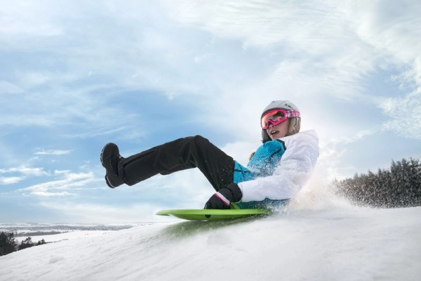 Издръжливата пластмаса устоява на зимните условия и остава лека за лесно пренасяне нагоре. Чинията е подходяща за деца от 3 години и възрастни, така че цялото семейство да се забавлява заедно.