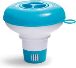 Плаващ дозатор за хлор Intex е практичен и удобен продукт, който помага да поддържате басейна или джакузито чисти. Това малко устройство се пълни с химически таблетки и плува на повърхността на водата, като постепенно освобождава почистващите вещества. Използвайки дозатора преди къпане, може да се насладите на плуване в чиста вода. Оборудван е с двустепенен капак, който предпазва съдържанието от деца, осигурявайки спокойствие и безопасност.