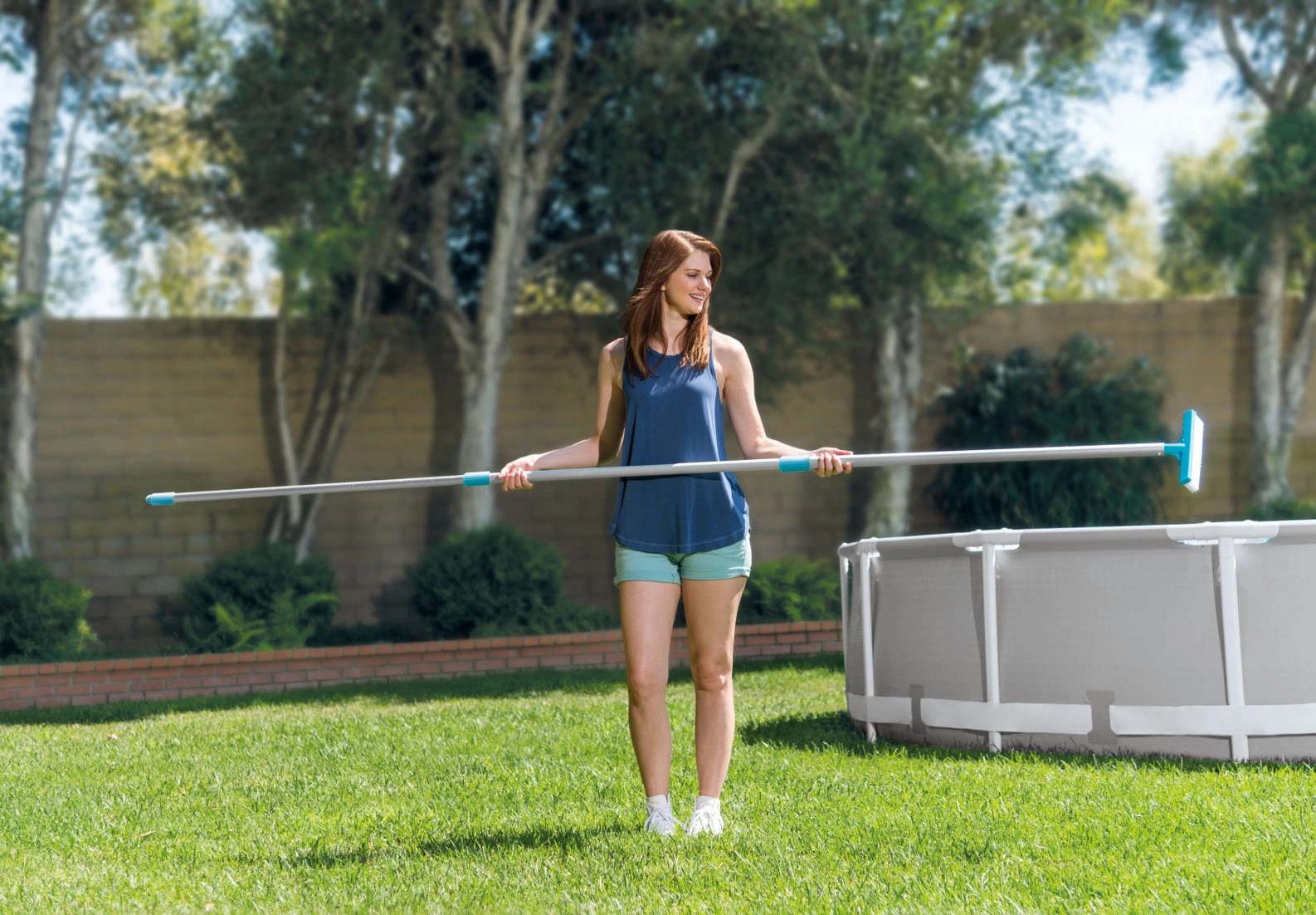 Комплектът е съвместим с алуминиевата телескопична дръжка INTEX (№ 29054) с диаметър на накрайниците 26,2 mm, така че можете бързо да сменяте приставките според текущите нужди. Идеален за надземни и вкопани басейни, където ще оцените ефективното почистване без усилие.