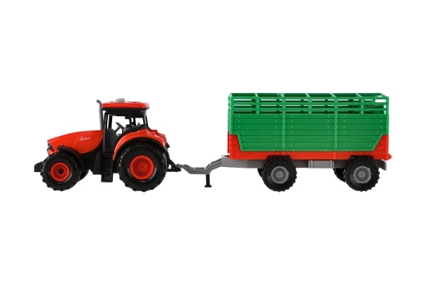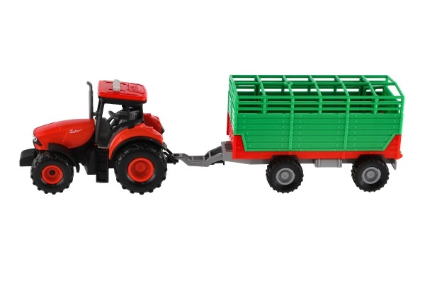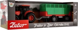 Този детайлно изработен пластмасов трактор Zetor с каруца е чудесен избор за деца от 3 години. Благодарение на инерционния механизъм тръгва лесно, бутоните активират реални звуци на мотор и светлини за по-автентична игра. Откачащото се ремарке позволява превоз на сено, животни или други товари и развива детското въображение при фермерски сценарии.