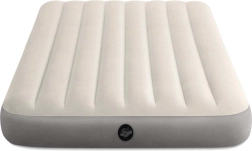 Надуваемият двоен дюшек INtex с кадифено мек, водоустойчив повърхностен слой осигурява стабилен и удобен сън у дома, на вилата и по време на пътуване. Вътрешната конструкция с подсилвания Dura‑Beam Fiber разпределя равномерно натиска и подпомага правилната позиция на гръбначния стълб за спокоен и здравословен сън.