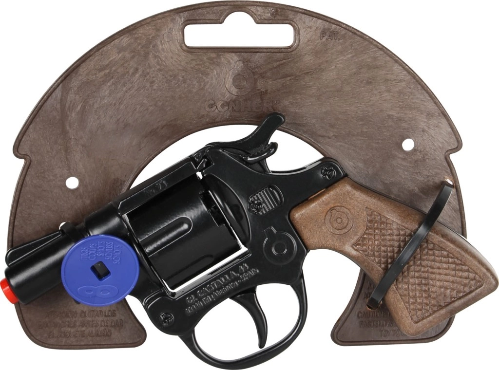 Подарете на децата автентично изживяване с полицейски револвер за капси. Благодарение на здравото метално тяло и черното покритие изглежда реалистично и същевременно е подходящ за безопасно детско забавление. Осемзарядният барабан осигурява повече изстрели без често презареждане.