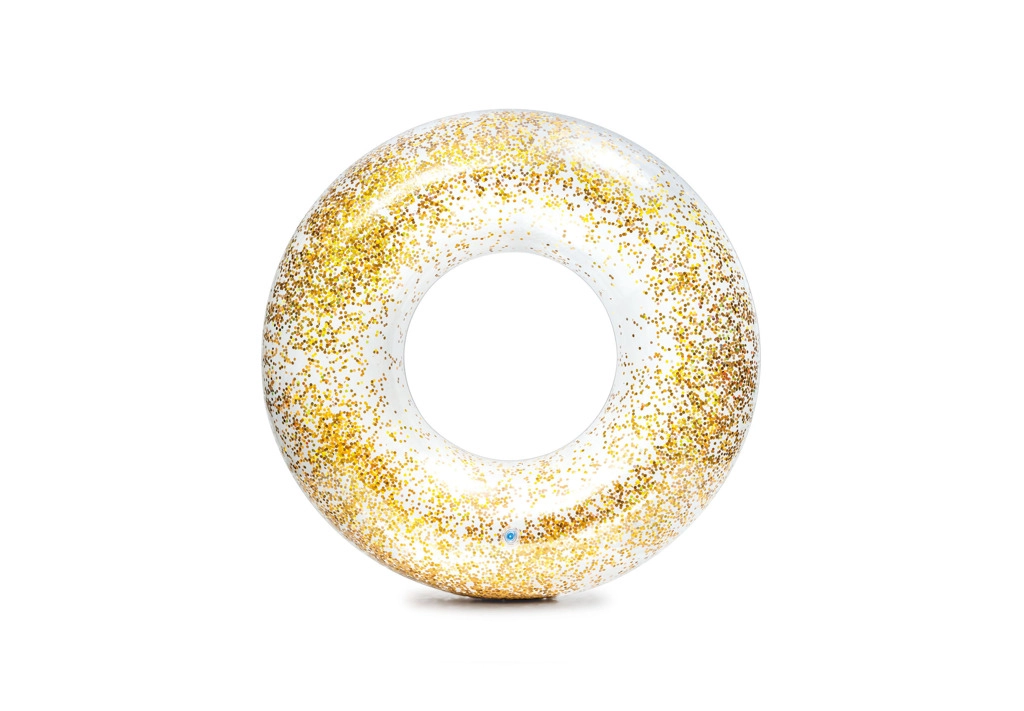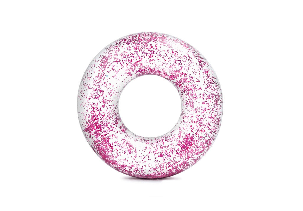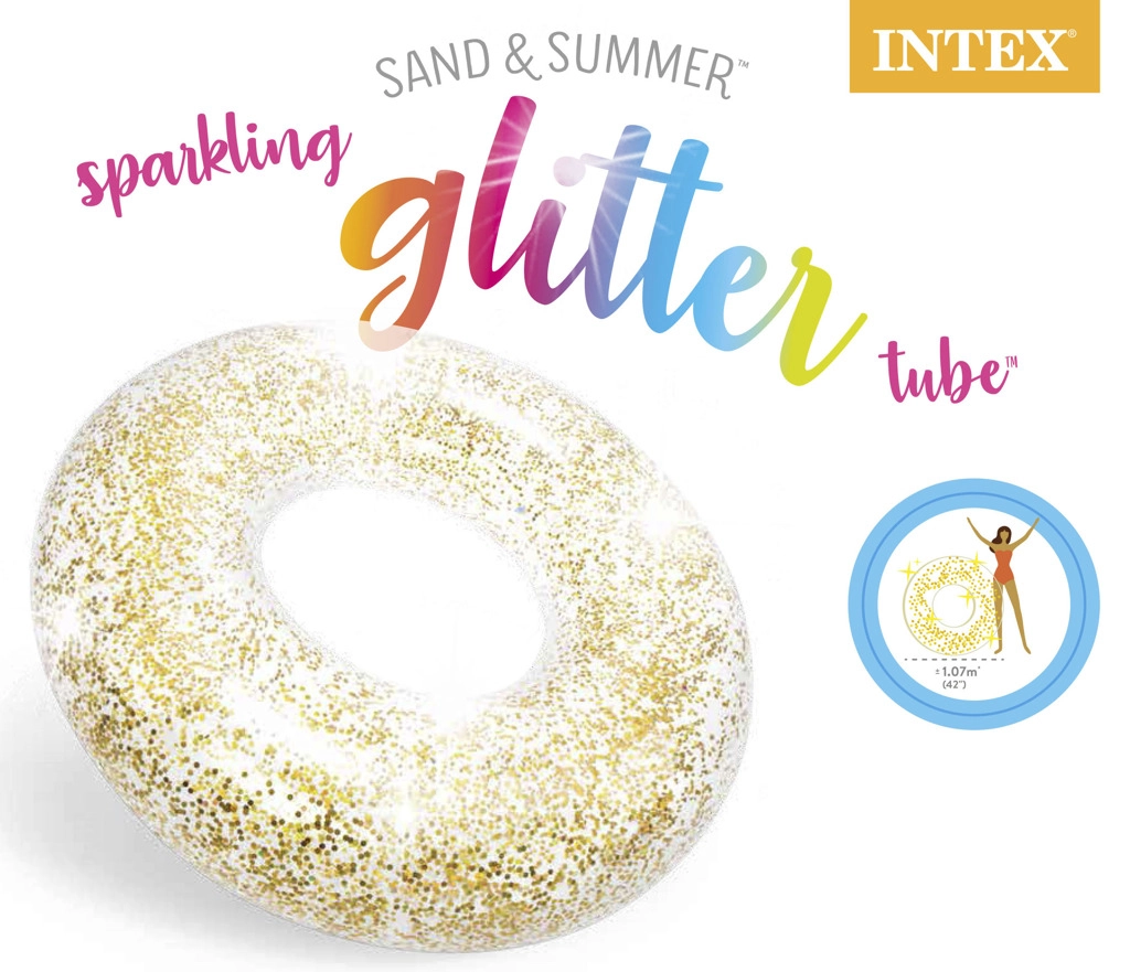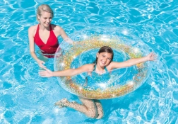 Надуваемият кръг INTEX Sparkling Glitter е идеален избор за басейн, езеро и море. Благодарение на прозрачния материал и броката отвътре създава на водната повърхност искрящ ефект, който придава на почивката ви уникален стил. Здравата конструкция от масивен винил осигурява дълъг живот и комфортно ползване.