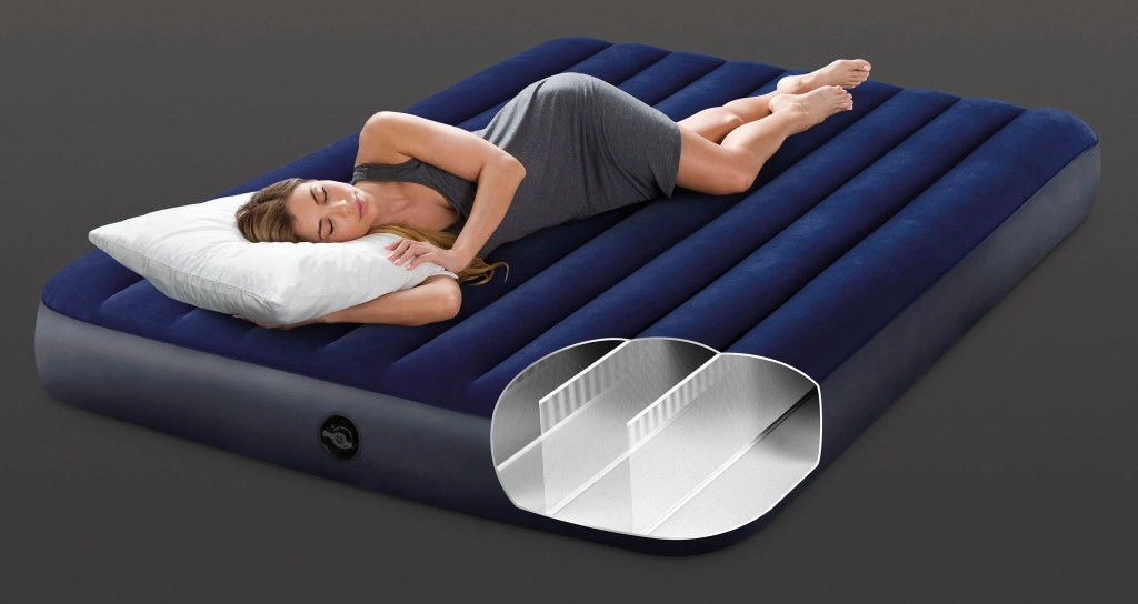 Надуваемият дюшек INTEX е перфектен избор за комфортен сън на двама души. Благодарение на размерите 203x152x25 cm и здравия PVC материал, покрит с водоустойчив велур, покрива всички изисквания за удобство. Синият цвят допълва елегантния му вид. Използването на технологията Dura-Beam Fiber, патентована в САЩ, гарантира не само дълготрайност, но и изключителен комфорт по време на сън.