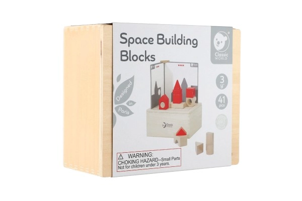 С този красив дървен конструктор децата могат да пробудят своето въображение и логическо мислене. Space Building Blocks съдържа 41 разнообразни елемента заедно с 14 карти, които придават ново измерение на творческите игри. Всяко ниво на картите се различава по трудност, което позволява постепенно подобряване на уменията.