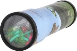 Детският калейдоскоп с динозавърска тематика носи очарователно визуално изживяване при всяко завъртане. Благодарение на качествената пластмасова изработка и компактната дължина 16,5 см се държи лесно в детската ръка и е чудесен както у дома, така и в движение.