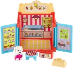 Сладка мини къщичка за кукли и фигурки носи голяма доза забавление в малък формат. Изберете между три теми – сладкарница за сладолед, цветарница и салон за красота. Всеки комплект включва любимец и 2 аксесоара за креативна игра. Компактният размер е идеален за път и за детски стаи.