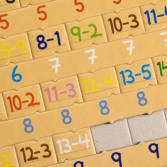 Пъзелите LARSEN дават на децата възможност да учат математика по забавен начин. Благодарение на здравия бордър подреждането е по-лесно и гарантира, че всяко парче пасва на правилното място чрез отворите от долната страна. Това бордово изпълнение позволява лесно съхранение и повторно подреждане. Графичната изработка е завладяваща, което насърчава децата към многократно подреждане.