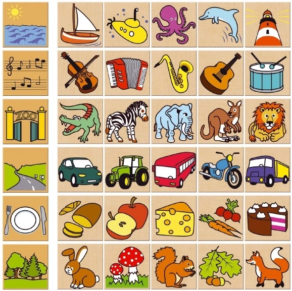 Detoa дървени пъзели Къде какво принадлежи е дидактическа игра, която помага на децата да разпознават предмети и да ги съотнасят към правилната картинка. Тази игра е идеална за подобряване на логическото мислене и паметта при деца от 3 години.