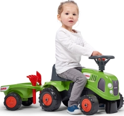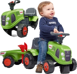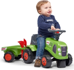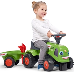 Очарователното зелено тракторче – количка за най-малките – е изработено от качествена пластмаса и е стабилно и безопасно за първите опити в карането. Благодарение на компактните размери и ниското тегло се управлява лесно, а завиващият преден мост и воланът с клаксон гарантират много забавление.