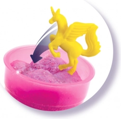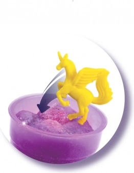 Създайте лизун за няколко минути благодарение на простия процес. Насипете праха, добавете вода, брокат и фигурка. Разклатете и наблюдавайте как лизунът сменя цвета си.