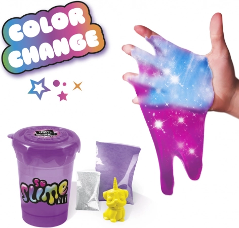 С креативния комплект So Slime Смяна на цветовете ще станете истински майстор в създаването на лизун. Просто изсипете праха в чашката, добавете брокат и фигурка. След това долейте вода до отбелязаната черта, затворете чашката и разклатете добре сместа. Отворете чашката и изчакайте пет минути, докато лизунът се образува. Комбинирайте отделните цветове, добавяйте брокат и се насладете на часове забавление. Не забравяйте, че това забавление е 100% нетоксично и следователно напълно безопасно за деца. Изработката на лизун също така стимулира креативността и любознателността.