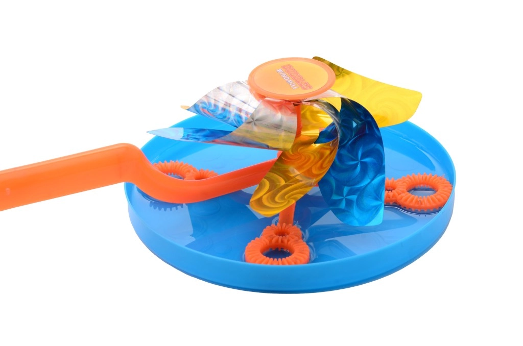 Завъртете забавлението в градината, на площадката или на празненства. Достатъчно е да налеете разтвора за балони в мелничката и при всеки повей на вятъра или завъртане на дръжката се създават красиви балони, които впечатляват деца и възрастни. Тази мелничка за сапунени балони е лека, лесно преносима и готова за употреба за миг.