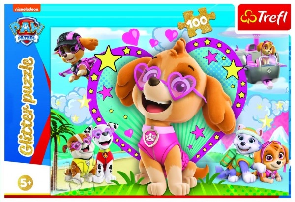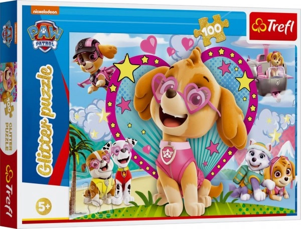 Пъзелът Пес Патрул Skye Glitter от марката Trefl предлага забавление и обучение за деца на 5 и повече години. Този комплект от 100 части развива креативното мислене и подпомага развитието на паметта и вниманието.