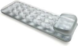 Шезлонгът е проектиран за комфортна почивка както във водата, така и на сушата. Благодарение на вградения възглавник ще се насладите на максимален комфорт, независимо дали четете, се излежавате на слънце или просто плавно се носите. Размерите са подходящи и за по-високи хора, така че можете да се напълно изпънете и отпуснете.