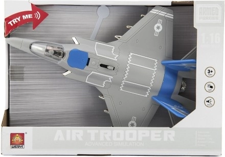 Този пластмасов изтребител е идеална играчка за малки войници и пилоти. Изработен е от качествени материали и е предназначен за деца от 3 години. Благодарение на своите реалистични светлинни и звукови ефекти носи много забавление.
