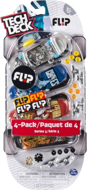 Tech Deck fingerboard – комплект от четири предлага реалистично усещане от карането в джобен формат. Използвай прецизно изработени декове, тракове и колелца, за да усъвършенстваш олита, кикфлипите и по-сложни комбинации. Благодарение на качествената изработка и автентичните графики на легендарни скейт марки това е идеалният подарък за всеки фен на скейтбординга.