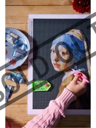 Диамантеното рисуване от GRAFIX предлага успокояващо творческо преживяване. С апликатора и восъка поставяте камъче по камъче на обозначените места върху платното с лепилен слой и постепенно създавате сияйна картина на емблематичния мотив Момиче с перла с размер 40 × 50 cm.