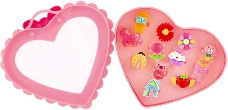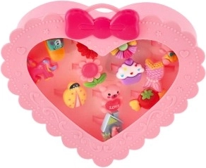 Комплектът пръстени е идеален за малки принцеси, които обожават модата и искат на всеки пръст различен пръстен. Всеки от 12-те пръстена има уникален дизайн, който може да включва цветя, плодове, панделки или животни.