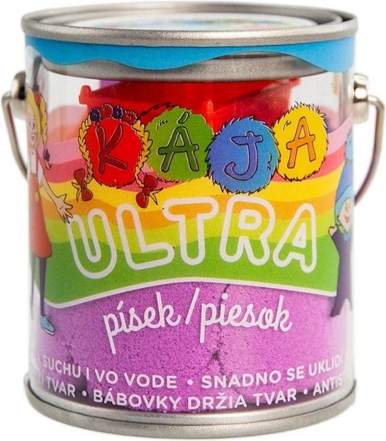 Кинетичният ULTRA пясък с лиценз КАЯ и БАМБУЛАЧЕК в опаковка 120 г и с една малка формичка предлага 6 ярки цвята. Моделира се отлично, не цапа, лесно се почиства и формичките запазват перфектно своята форма. С него може дори да се строи под вода, а благодарение на меката консистенция служи и като антистрес средство. Подходящо за деца от 3 години.