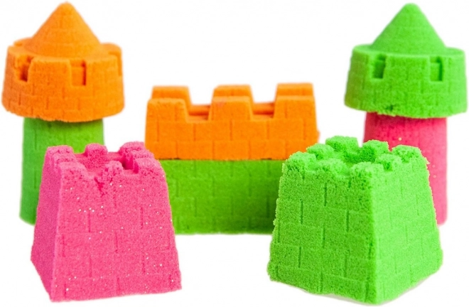 Пакетът съдържа 200 г пясък и практични 5 формички за развитие на креативността и фината моторика. Приятната, мека текстура действа успокояващо и е отлична като антистрес активност за малки и големи.