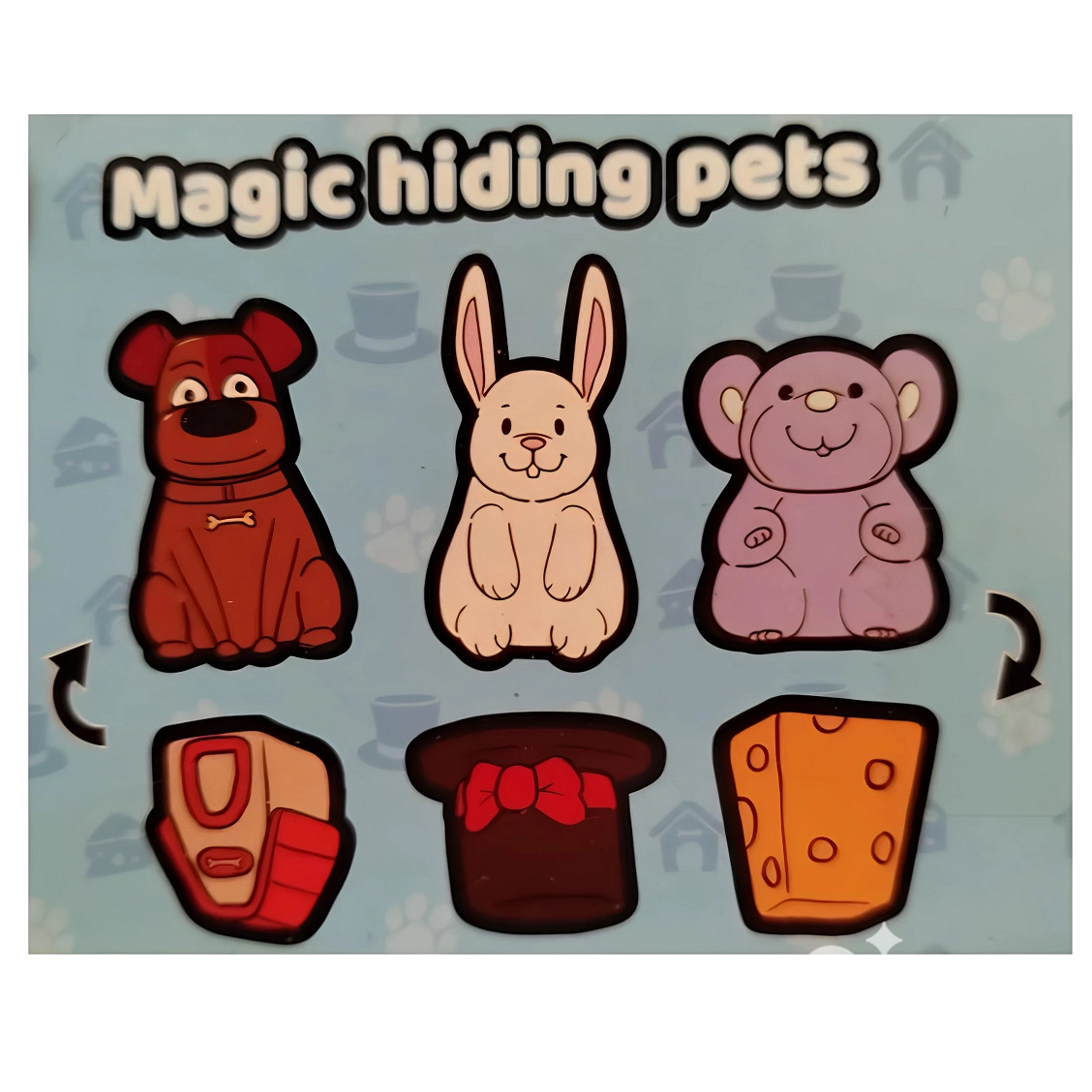 Предлагат се 3 вида: мишка ⇄ сирене, заек ⇄ шапка и куче ⇄ колибка. Благодарение на малките размери играчките са чудесни за раницата, колата или чакалнята. Мекият гумен материал е приятен на допир и издръжлив за ежедневна игра.