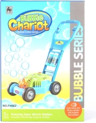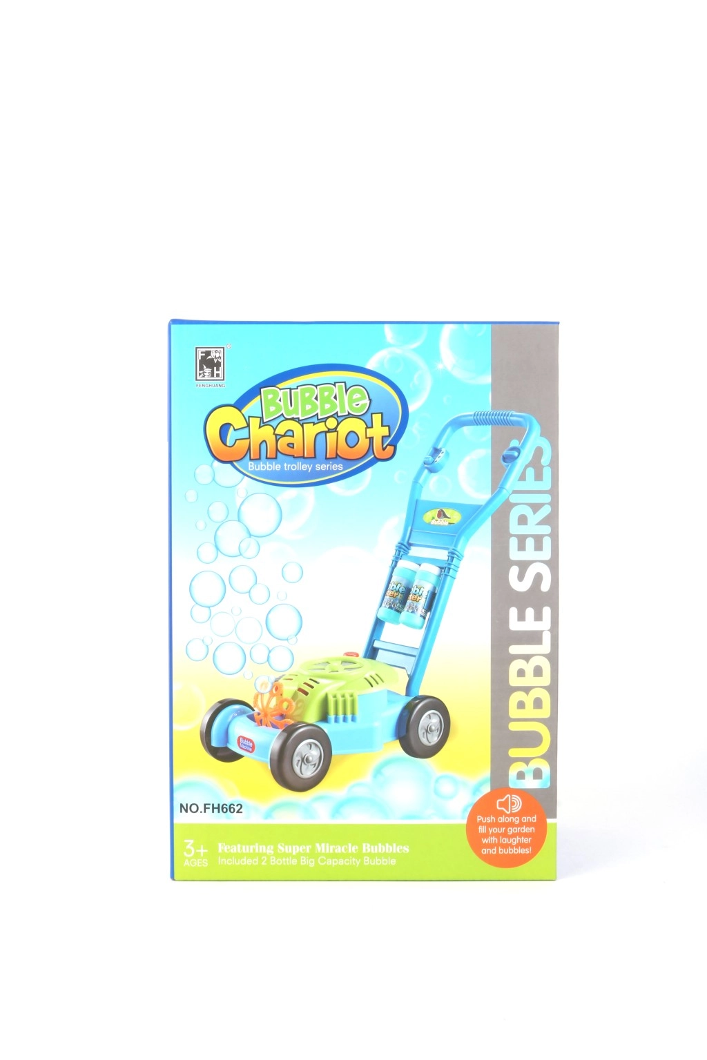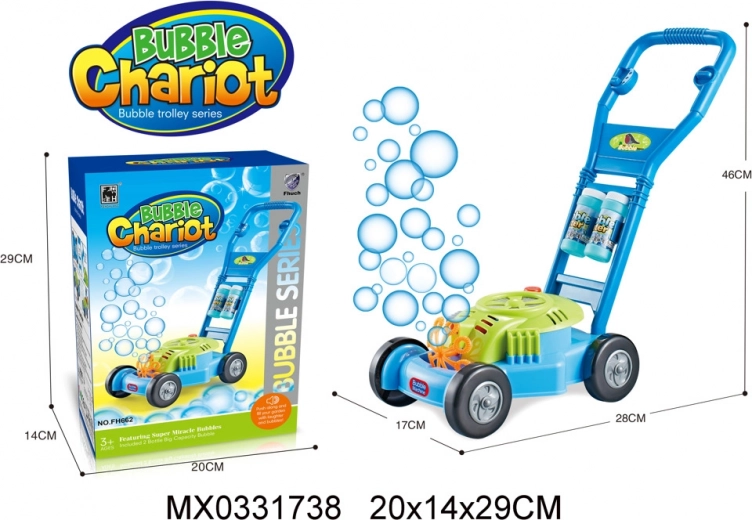 Ергономичната пластмасова дръжка и стабилната конструкция с широки колела осигуряват лесно водене дори за по-малки деца. Нужно е само да допълните балонната течност, да натиснете бутона и да гледате как балончетата се надпреварват едно след друго.