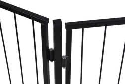 Инсталирането е бързо и надеждно благодарение на монтажа към стена (анкерните елементи са включени в комплекта). Портите са взаимно съвместими – може да се разшири пространството чрез комбиниране на два комплекта и да се създаде по-голяма защитна зона. Издръжливият черен дизайн пасва както на модерни, така и на класически интериори.