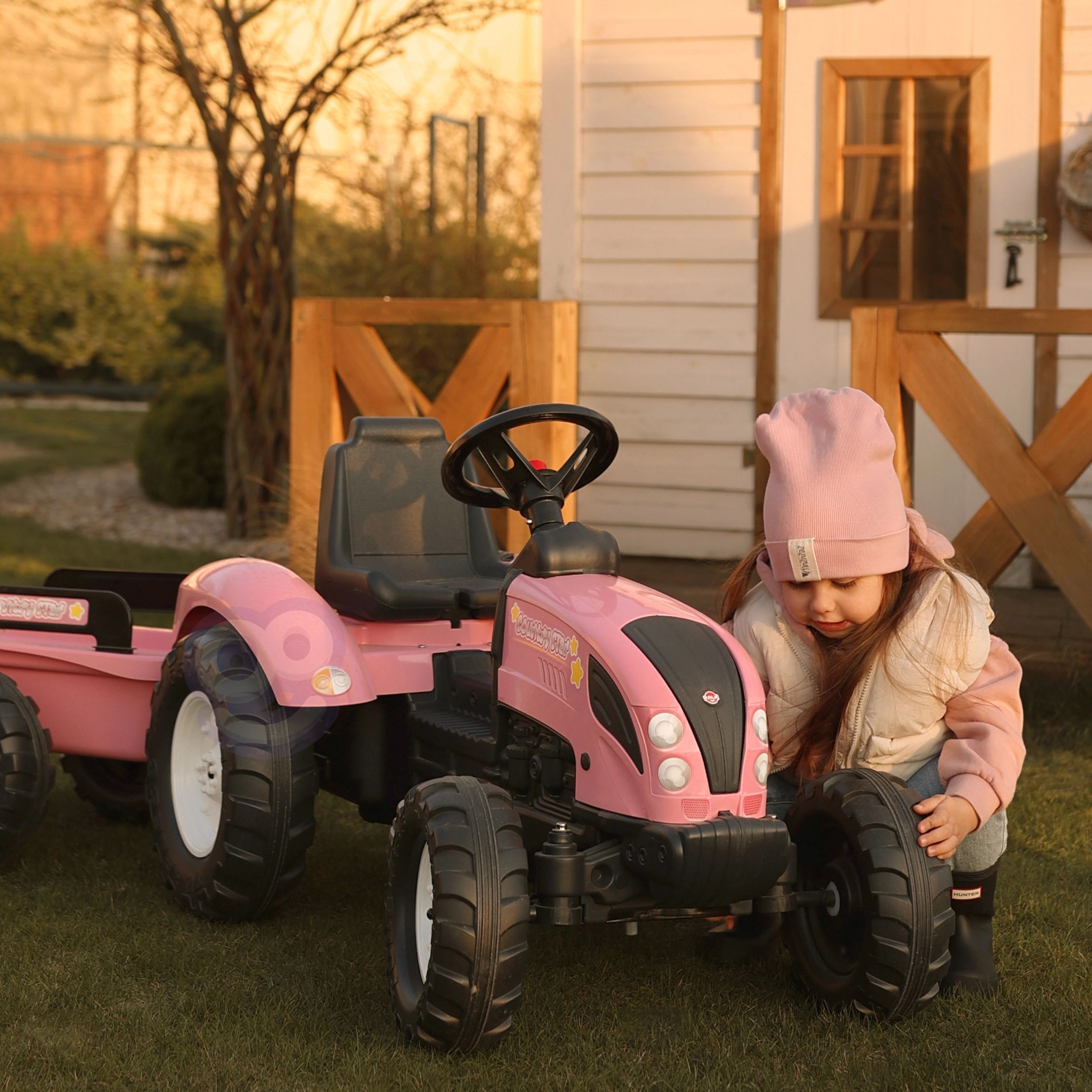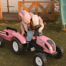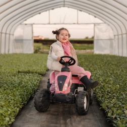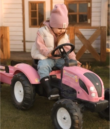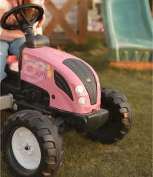 Тракторчето е проектирано за деца от 2 години, има стабилна конструкция, завиващ преден мост за лесно управление и клаксон на волана за интерактивна игра. Производството се извършва във Франция с акцент върху качеството и безопасността на материалите.
