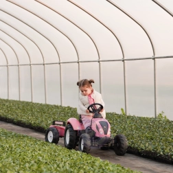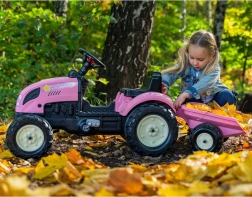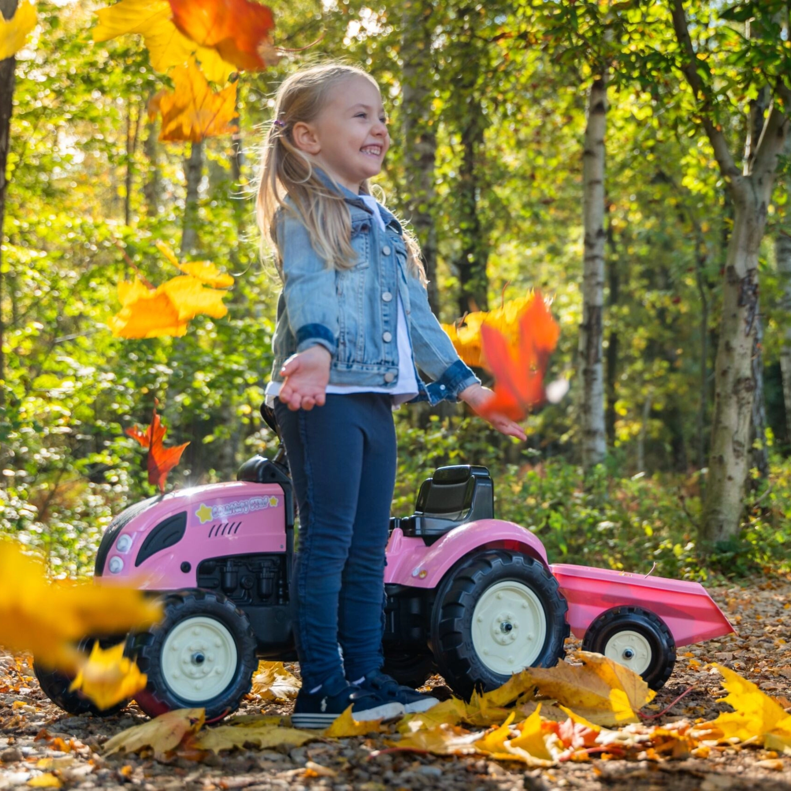Детското тракторче FALK Country Star ще зарадва всички малки шофьори, които обичат движение и игра на открито. Конструкцията от издръжлива пластмаса осигурява дълъг живот и безопасна употреба, докато верижното задвижване на задния мост предоставя плавно каране. Благодарение на подвижното ремарке децата могат да превозват играчки и дребни вещи и да се насладят на реалистично изживяване при шофиране.