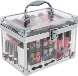Открийте универсалния козметичен куфар ZMILE Acrylic с общо 42 части за перфектен грим и маникюр. В прозрачния куфар ще намерите всичко – от 16 сенки за очи, ружове и пудра, през червила и гланцове до 3 лака за нокти и аксесоари за оформяне на нокти. Лекият, преносим и дерматологично тестван комплект отговаря на строгите стандарти на ЕС.