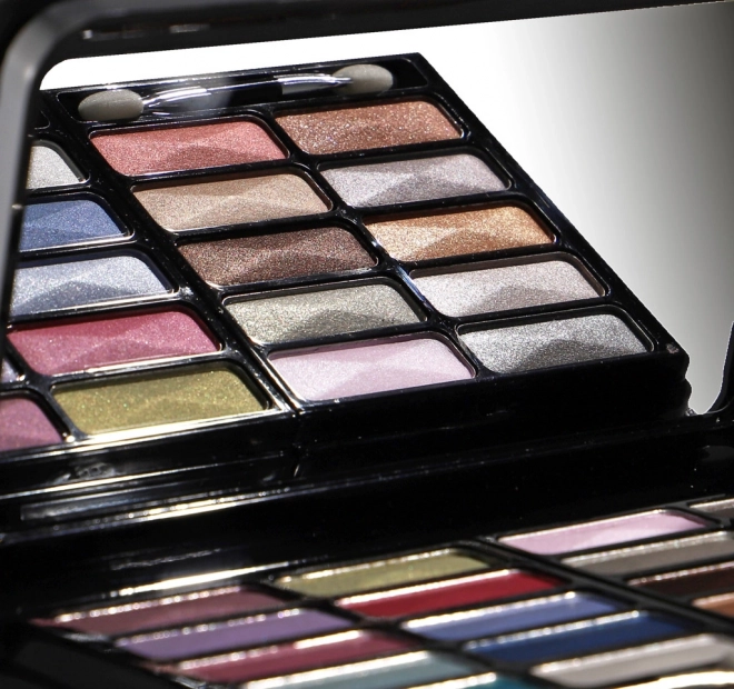 Открийте компактна козметична палитра, която има всичко за перфектен грим всеки ден и при пътуване. Предлага 24 сенки за очи, 5 ружа, 9 гланса за устни (от тях 5 кремообразни), 2 пудри, молив за очи, апликатори и четки, гребенче и вградено огледалце. Дерматологично тествано и в съответствие със строгите стандарти на ЕС.