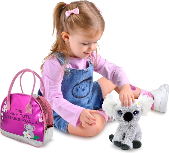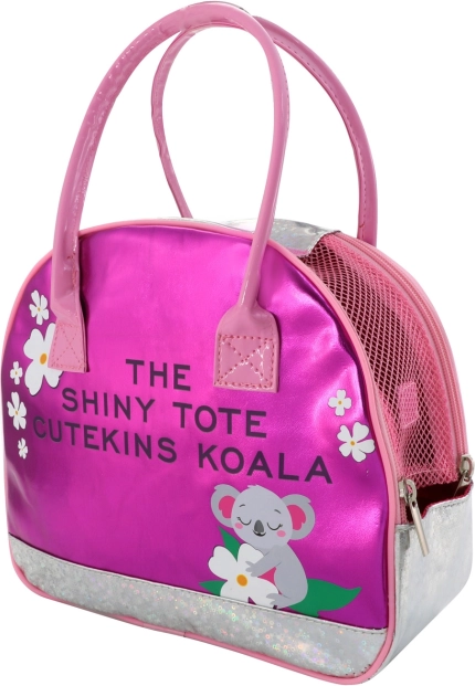Лъскавата розова чантичка с мотив на коала позволява удобно пренасяне на играчката и допълва всеки детски тоалет.