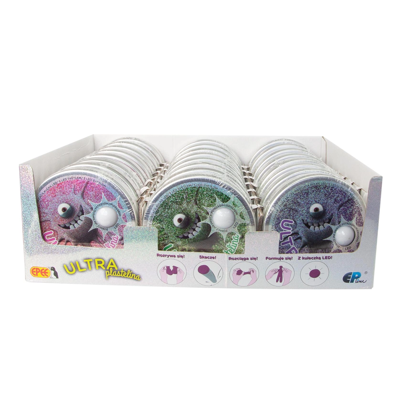 Ултра пластелинът предлага уникално изживяване за игра и сензорна релаксация. Благодарение на изключителните си физични свойства лесно се моделира, разтяга и отскача като топка. Интегрираното топче с цветна LED светлина се включва и мига при движение, така че можете да създавате ефектни светлинни скокове и трикове.