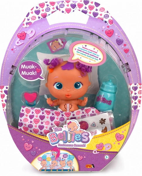 Куклите Bellies мърморят, а сърчицето им бие, което възпроизвежда реални звукови ефекти на бебе.