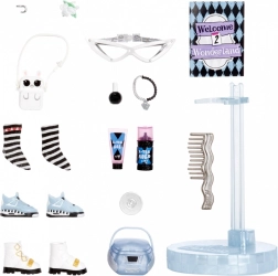 Включени са практична стойка и колекция от аксесоари, които позволяват да създаваш оригинални сценки и да изложиш куклата на рафт.