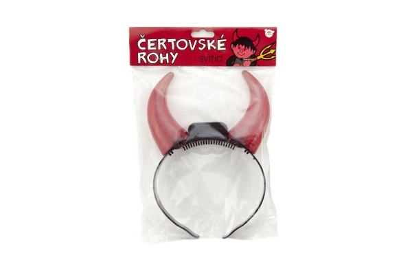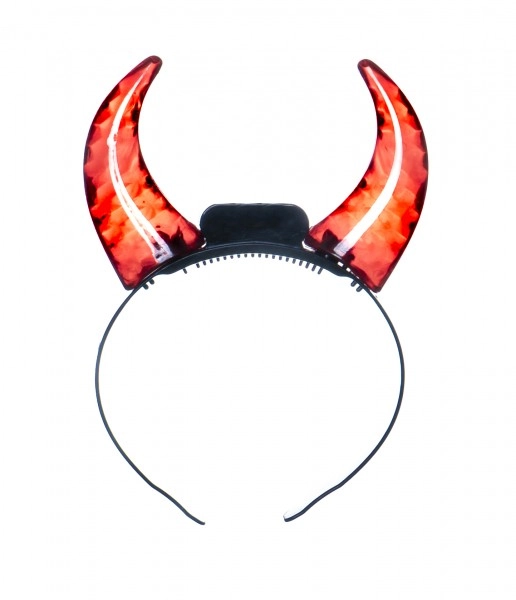 Озарете костюма си за маскарад с тези светещи дяволски рога. Лекият пластмасов аксесоар с батерийно захранване и размер 15 см се носи удобно и е идеален за карнавал, парти и Хелоуин.