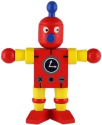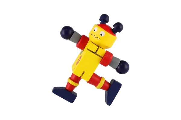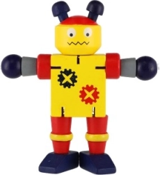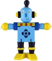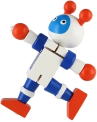 Очарователен дървен робот с височина 12 см ще зарадва всеки малък изследовател. Благодарение на еластичните ластичета има подвижни крайници и глава, така че децата лесно могат да го сложат да седне, да го изправят или да го аранжират в различни пози. Играчката развива фината моторика, креативността и въображението. Подходящо от 18 месеца.