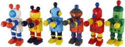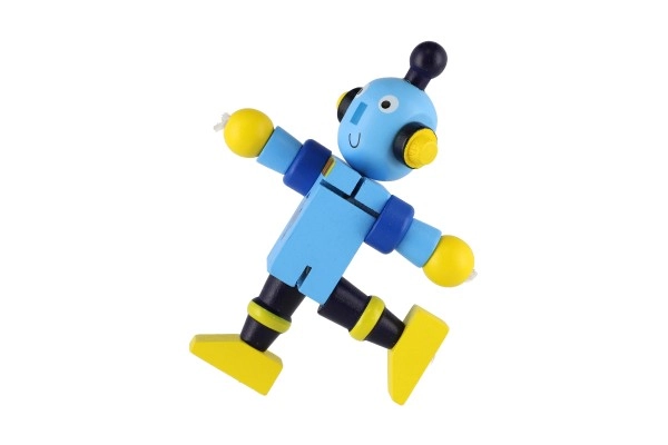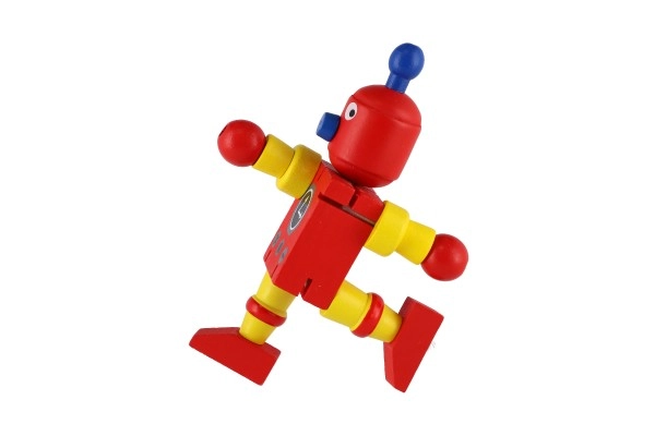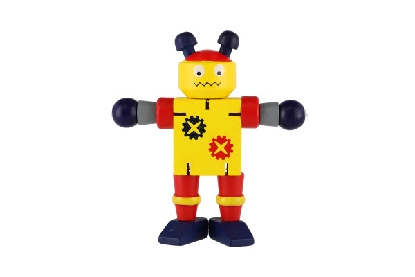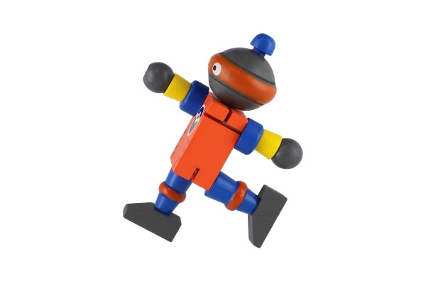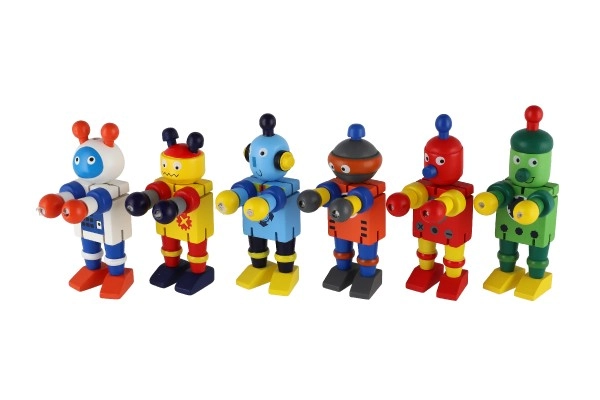 Тези цветни дървени роботи са идеални за първи строителни и ролеви игри. Благодарение на ластичните свързвания се огъват лесно, задържат пози и подтикват децата към творческо разказване на истории. Здравото дърво и гладките ръбове осигуряват безопасно и приятно боравене дори за най-малките.