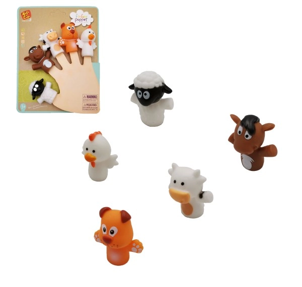 Комплектът включва пет любими животни (напр. крава, конче, кученце, овчица, пиленце) в ярки цветове, които привличат вниманието и мотивират към активна игра. Пръстовите кукли са чудесни за развитие на речта, креативността и социалните умения при деца от 3 години.