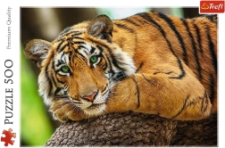 Пъзел с впечатляващ портрет на тигър, съставен от 500 части. След подреждане получавате изображение с размери 48x34 см. Идеален за любители на животни и подреждане на пъзели.