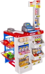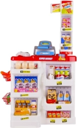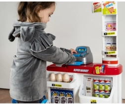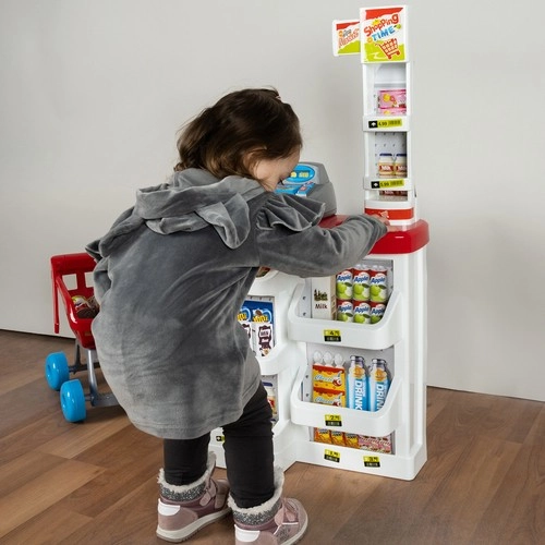 Детският супермаркет е идеален за малки продавачи и клиенти. Съдържа функционална каса с изтеглящо се чекмедже, баркод скенер със звук, магазинна везна, рафтове с продукти и пазарска количка. Благодарение на богатото оборудване децата тренират сметни операции, комуникация и самостоятелност.