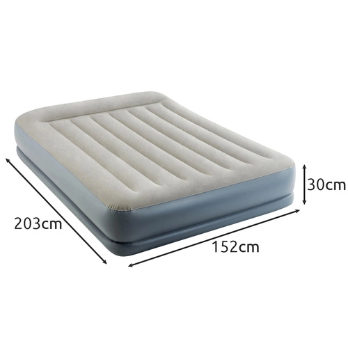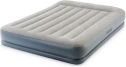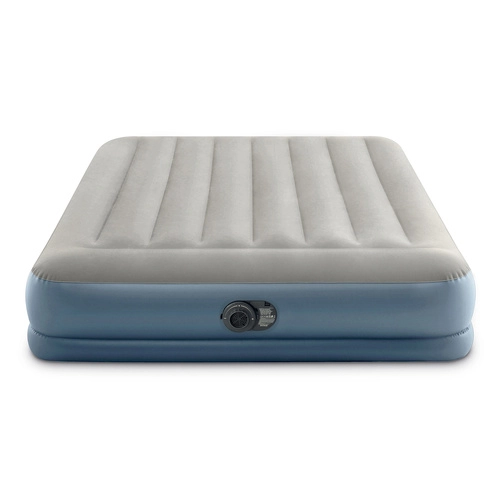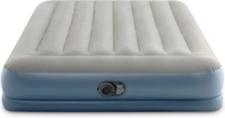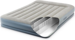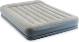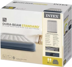 Двойният надуваем матрак INTEX с технология Dura-Beam Fiber-Tech предлага стабилна опора, комфортна велурена повърхност и бързо надуване и изпускане благодарение на вградената електрическа помпа за около 3 минути. Идеален като удобно легло за гости, за дома и къмпинг, с товароносимост до 272 kg и лесно съхранение.