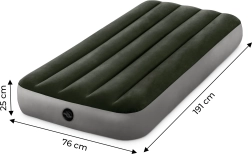 Насладете се на комфорт по време на пътуване или у дома с този надуваем матрак от марката Intex. С размери 191x76x25 см е перфектен за деца или сам човек по време на път, било то в хотел или на къмпинг. Изработен е от издръжливо PVC и е покрит с приятен водоустойчив велур.