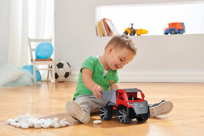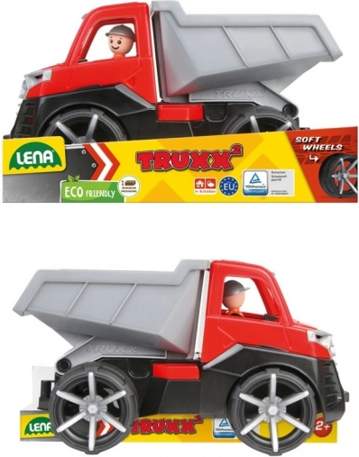 Самосвалът LENA TRUXX 2 е модерна играчка за малки любители на техниката. Предлага реалистични функции, които подкрепят творческата игра – отваряемият покрив осигурява достъп до кабината с фигурката на шофьор, а повдигащата се каросерия с предпазител безопасно превозва и изсипва товара точно там, където е нужно.