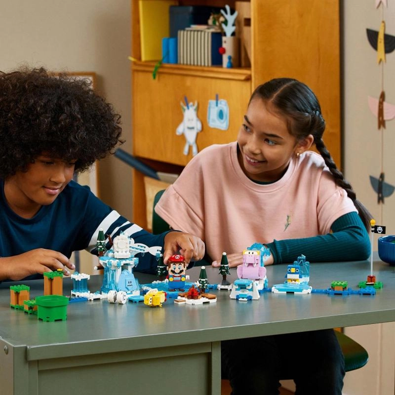 LEGO Super Mario: Снежно приключение с Флипрус – разширяващ сет позволява на децата да създадат динамично ледено ниво за събиране на цифрови монети и разиграване на различни истории.