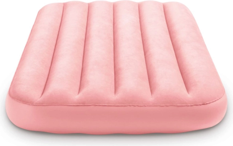 Този розов детски матрак INTEX е отличен избор за преспиване на приятели, ваканционни пътувания и ежедневна почивка. Издръжливото PVC с нежен велурен покривен слой е приятно на допир и не се хлъзга, което повишава комфорта и безопасността по време на сън.