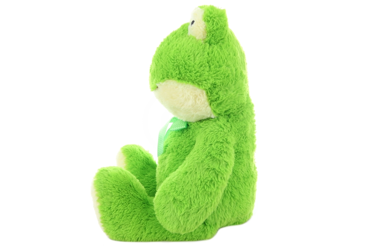 Тази голяма плюшена жаба ще зарадва с мекотата си и приятния материал, който приканва към гушкане. Благодарение на приятелското изражение и деликатната панделка тя ще се превърне в любима играчка и чудесна декорация. Идеална е за бебета, деца в предучилищна възраст и по-големи деца.