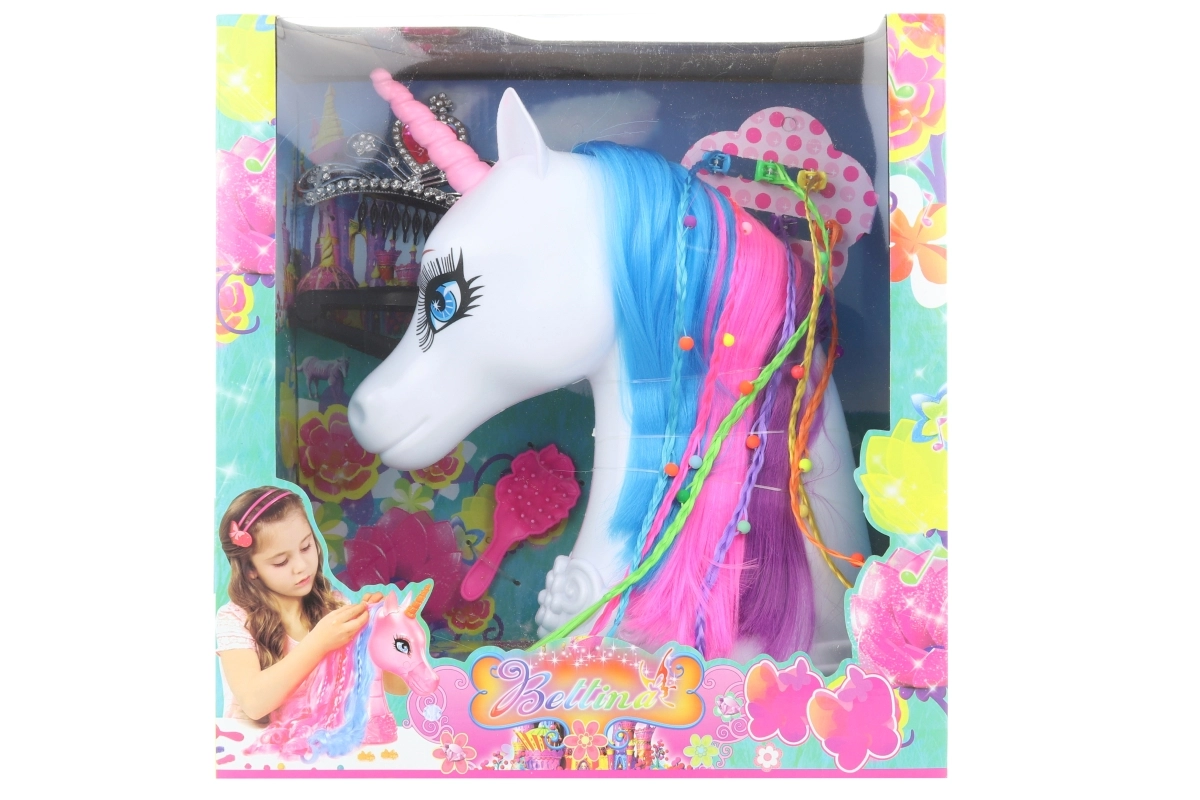 Този очарователен еднорог за ресане е чудесен спътник за всички малки фризьорки и почитатели на вълшебния свят. Стабилната глава с гъста грива позволява лесно ресане, сплитане и декориране. В комплекта има пълен набор аксесоари, с които децата създават оригинални прически за всеки ден.